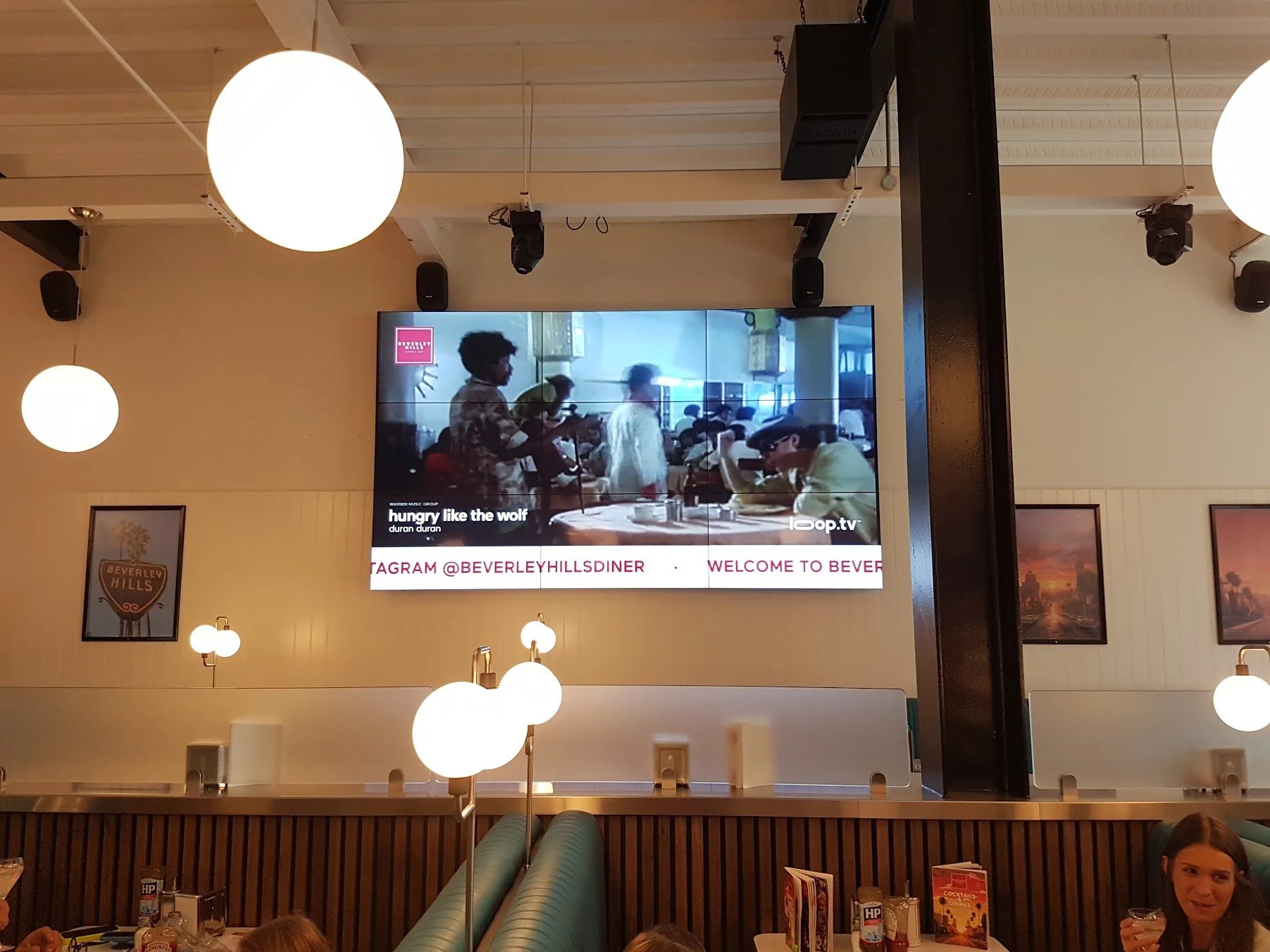 Guests arriving at Beverley Hills Diner step into a venue that feels active, vibrant and full of energy. The sound system builds atmosphere throughout the space, while bass speakers add depth and the giant video wall brings constant movement and visual impact.